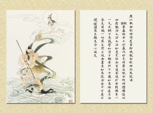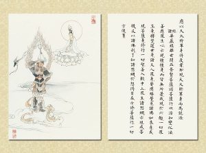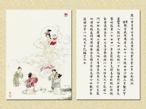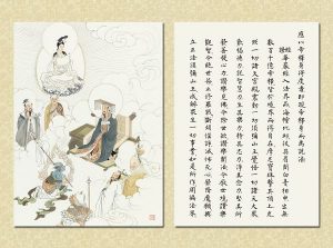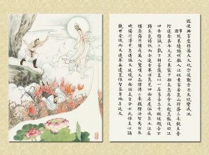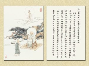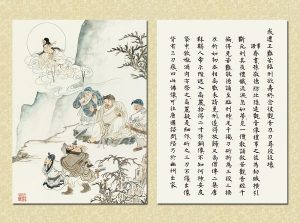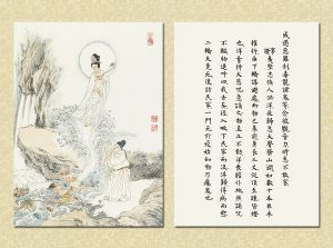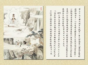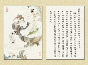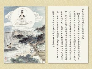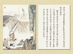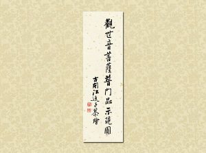 國畫大家 逸子江老師運用其絕妙筆觸,于一九六九年恭繪『觀世音菩薩普門品示現圖』四十幅完成,人物之外襯以山林之景神態生動,並輔以經文及感應事證,可謂無言說法,讓讀者有一歷眼根永為道種之法喜,更使人敬佩 逸子江老師『以畫載道』已達造微入妙之境。