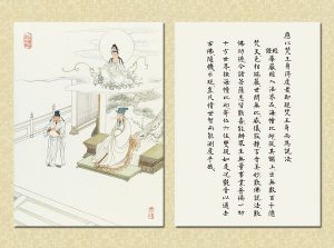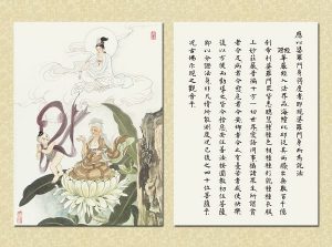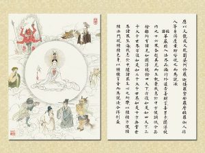 願有緣恭讀『觀世音菩薩普門品示現圖』者,能感知觀音菩薩救度眾生及慈悲為懷的道理,啟發自我本性的良知,發起大慈悲心,像觀世音菩薩一樣,發願救度眾生。以觀世音菩薩的慈悲心為自己的心,以觀世音菩薩的宏願為自己的誓願,效法菩薩,行菩薩道,救度眾生,才能真正獲得『觀世音菩薩普門品』的殊勝利益。
