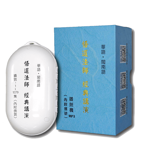 「悟道法師經典講演」MP3播經機,內容收錄上悟下道法師歷年華語、閩南語經典講演內容及念誦佛號,44個品項共1379集內容豐富,完整目錄詳見禮請網頁。