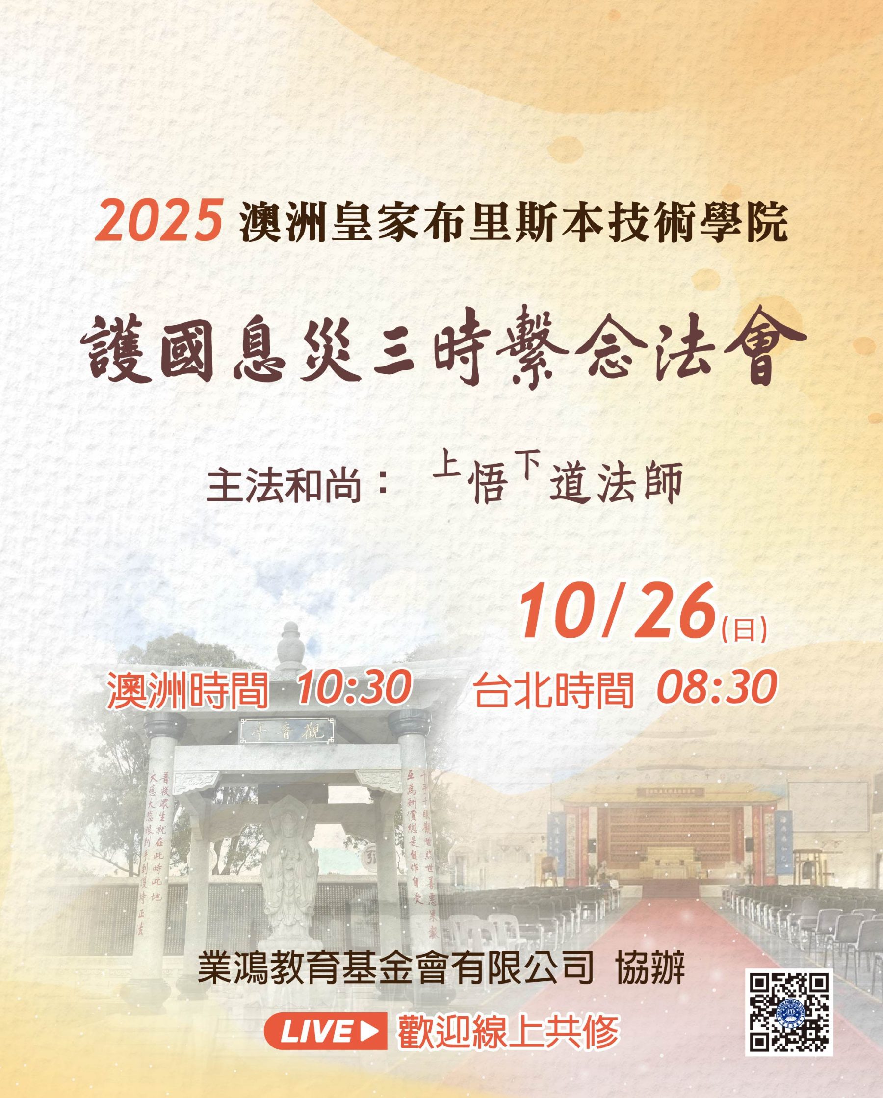 10/26 線上直播共修|澳洲皇家布里斯本技術學院護國息災三時繫念法會