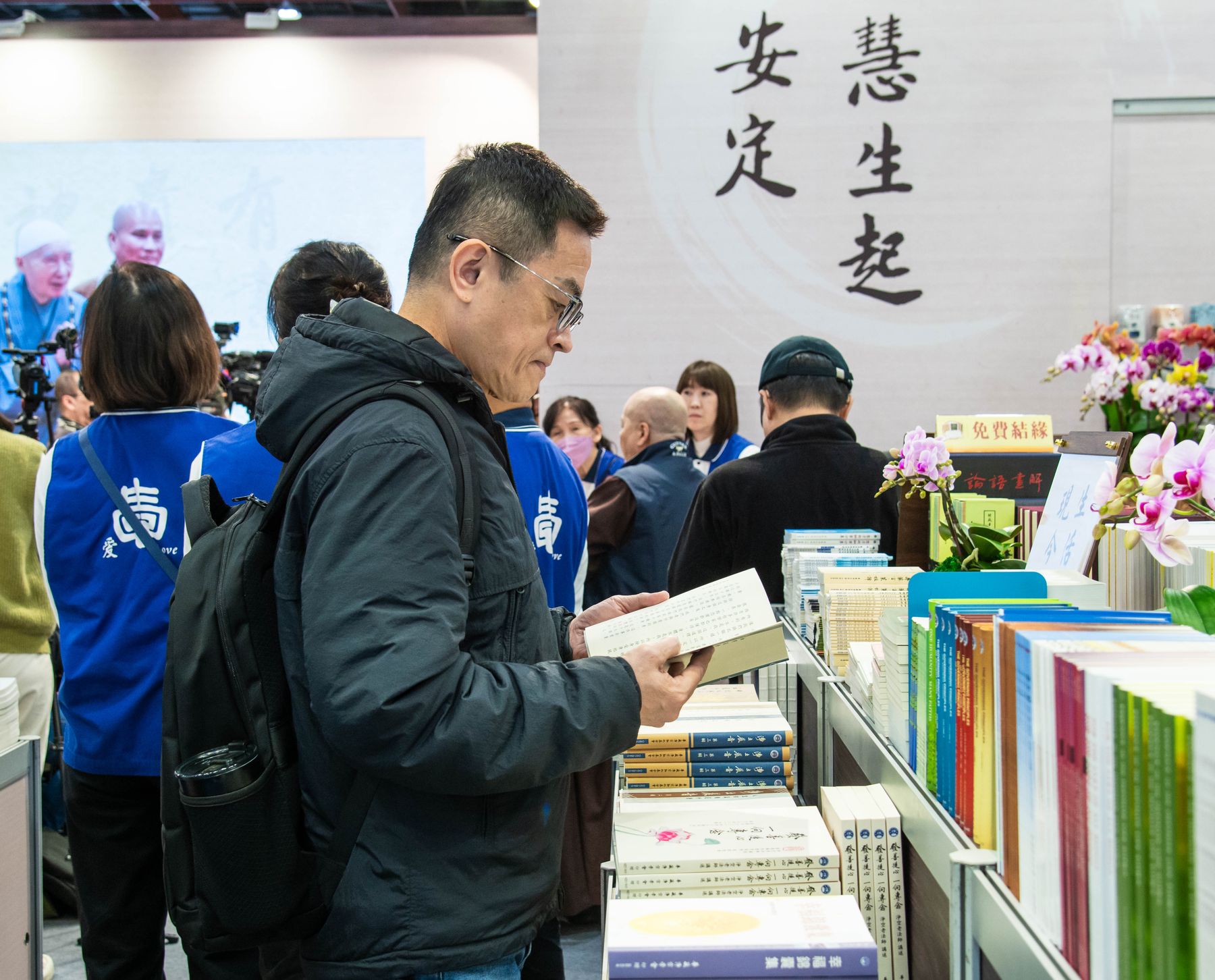 本次展區以「讓智慧生起,讓心安定」為策展核心,重新整合書籍陳列架構,規劃四大主軸:「清淨自在*佛法智慧」、「聖賢教育*品德修養」、「 國學之美*文化傳承 」及「生活智慧*現今世代」,串聯古今,展現佛法由經典走入現代生活的實踐路徑。