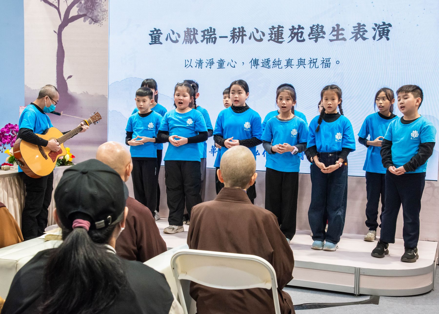 隨後「童心獻瑞」由耕心蓮苑小朋友帶來純真演出,清淨童心,為書展注入明亮而柔軟的祝福,現場掌聲與笑容交織。