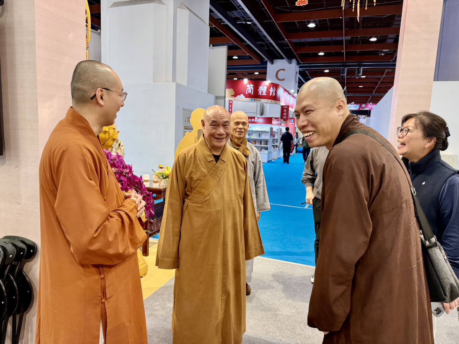 2/4(三)台北國際書展華藏展區,現場人潮絡繹不絕,氣氛歡喜且溫暖,上悟下道法師與多位貴賓親臨會場,共同見證法教的傳承與感動。