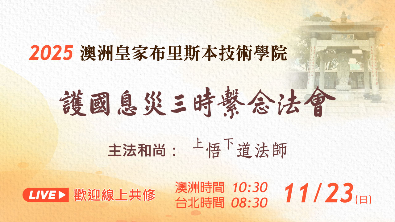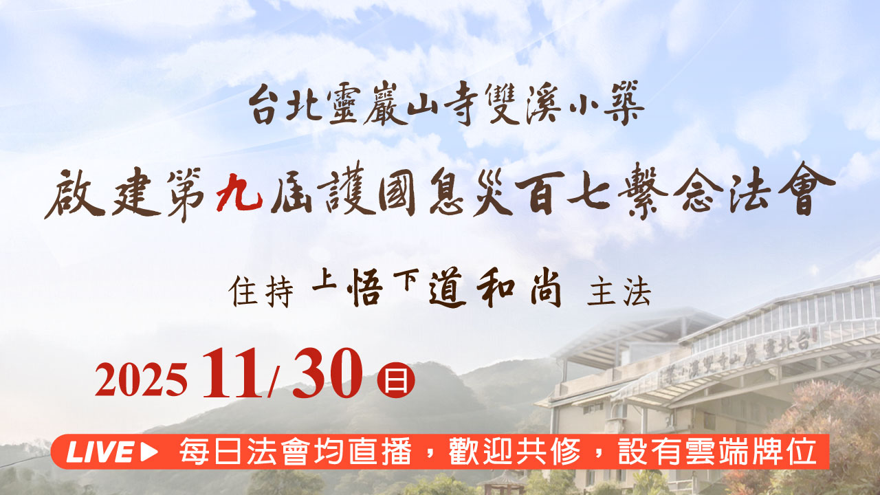 台北靈巖山寺雙溪小築謹訂於 2025 年 11 月 30 日,啟建第九屆護國息災百七繫念法事,相關資訊請參閱…